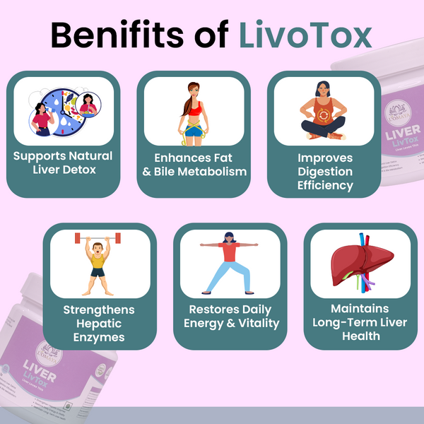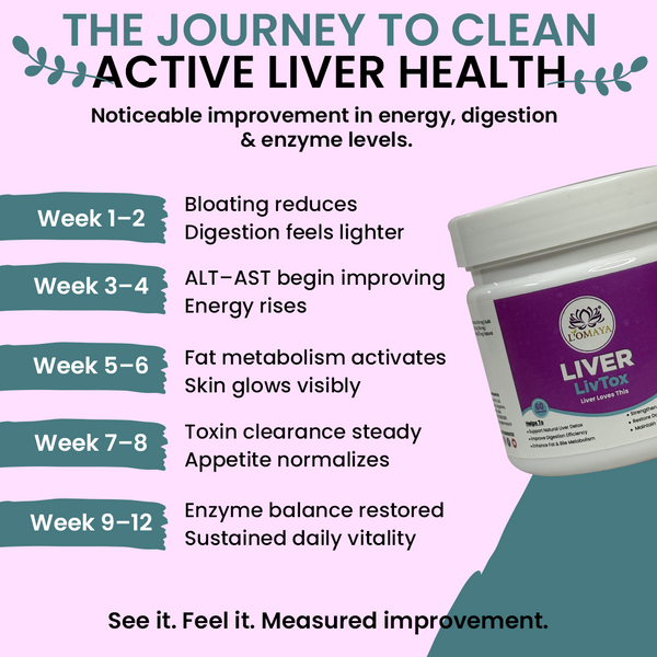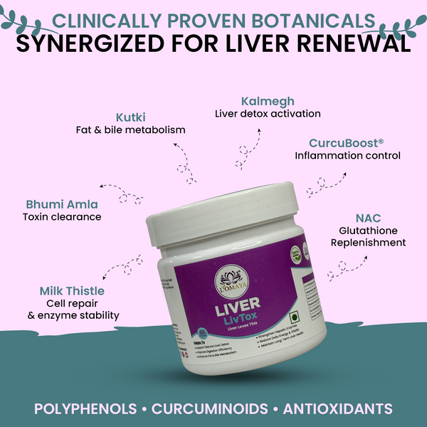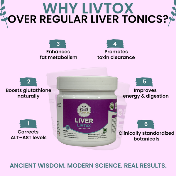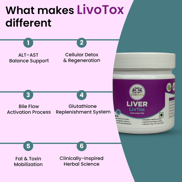 LivoTox is a clinical-grade hepatoprotective system, not just a tonic. It restores liver performance through a three-axis mechanism — regulating enzymes (ALT, AST), boosting bile secretion, and protecting hepatocytes from oxidative overload. Its precise synergy of NAC and Kutki delivers functional restoration that few herbal detoxes achieve, making it uniquely efficient yet gentle.