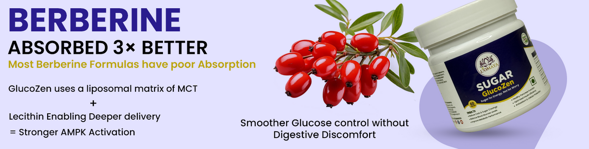 Berberine is one of nature’s most powerful insulin sensitizers — but it’s often limited by poor absorption. GlucoZen uses a liposomal matrix of MCT and Lecithin to make Berberine fat-soluble, enabling deeper tissue penetration and prolonged AMPK activation, the same pathway targeted by modern glucose-control drugs. This innovation ensures higher bioavailability, sustained blood sugar balance, and better digestive tolerance.