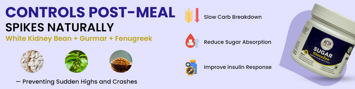 Yes. By improving insulin and leptin signaling, GlucoZen helps stabilize post-meal glucose spikes and sudden energy dips. Its Carb & Sugar Inhibition Matrix with White Kidney Bean and Gurmar naturally slows carbohydrate breakdown and curbs cravings. The result is a smoother, more consistent energy curve throughout the day — without fatigue or brain fog.