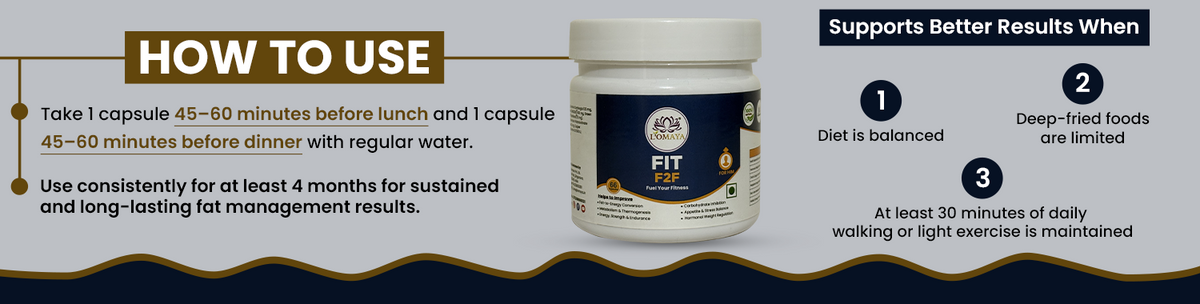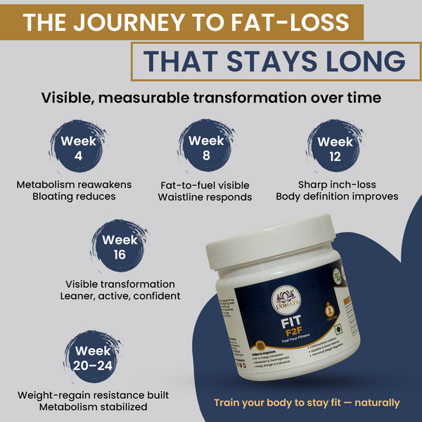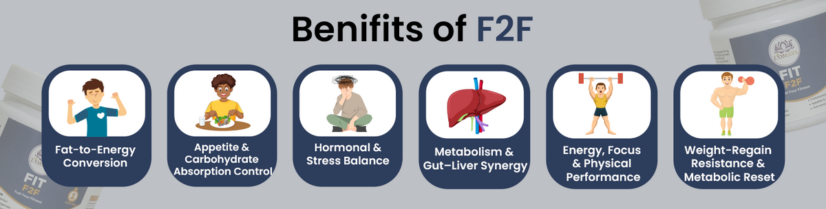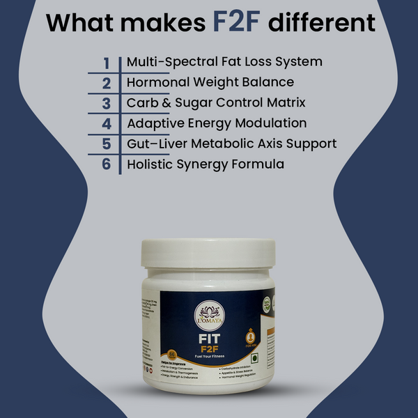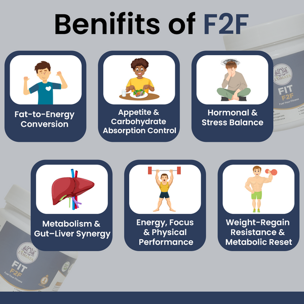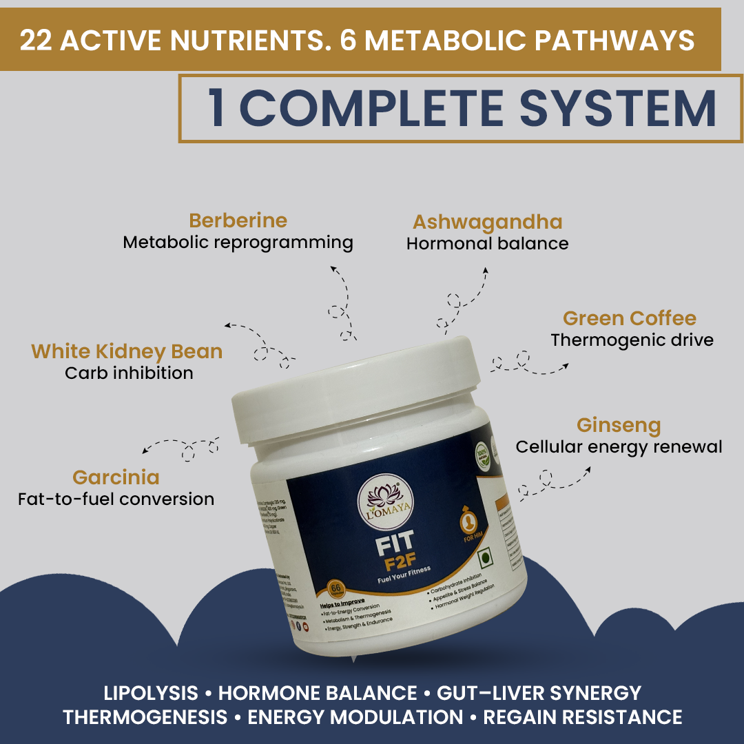 F2F is built on a multi-pathway approach rather than a single mechanism. It supports fat-to-energy conversion (lipolysis and thermogenesis), hormone regulation (cortisol, leptin, thyroid feedback), gut-liver health (which affects fat storage and mobilization), flourish gut bacterial flora (to improve SFC generation for efficient fat metabolism) & sustainably boost entire metabolic system. By addressing multiple systems at their core, the aim is to create deeper, more reliable fat loss that doesn’t fade when you stop the supplement.