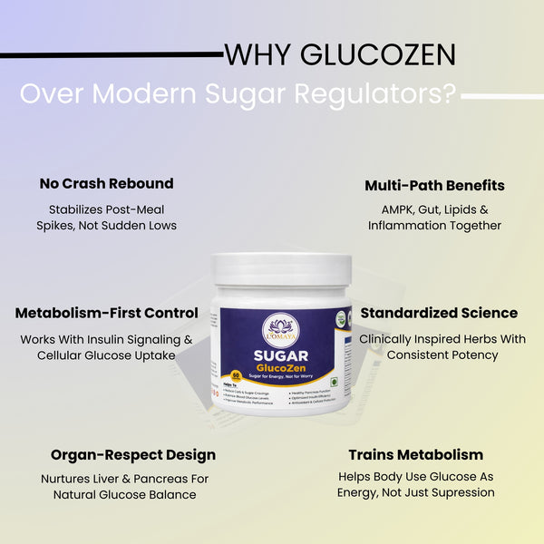 Sugar Imbalance Begins When The Body Loses Its Ability To Properly Sense, Utilize, And Regulate Glucose. GlucoZen Helps Restore This Metabolic Intelligence — Supporting Insulin Sensitivity, Liver Rhythm, And Cellular Glucose Utilization So Sugar Is Used For Energy, Not Left Circulating As Risk.